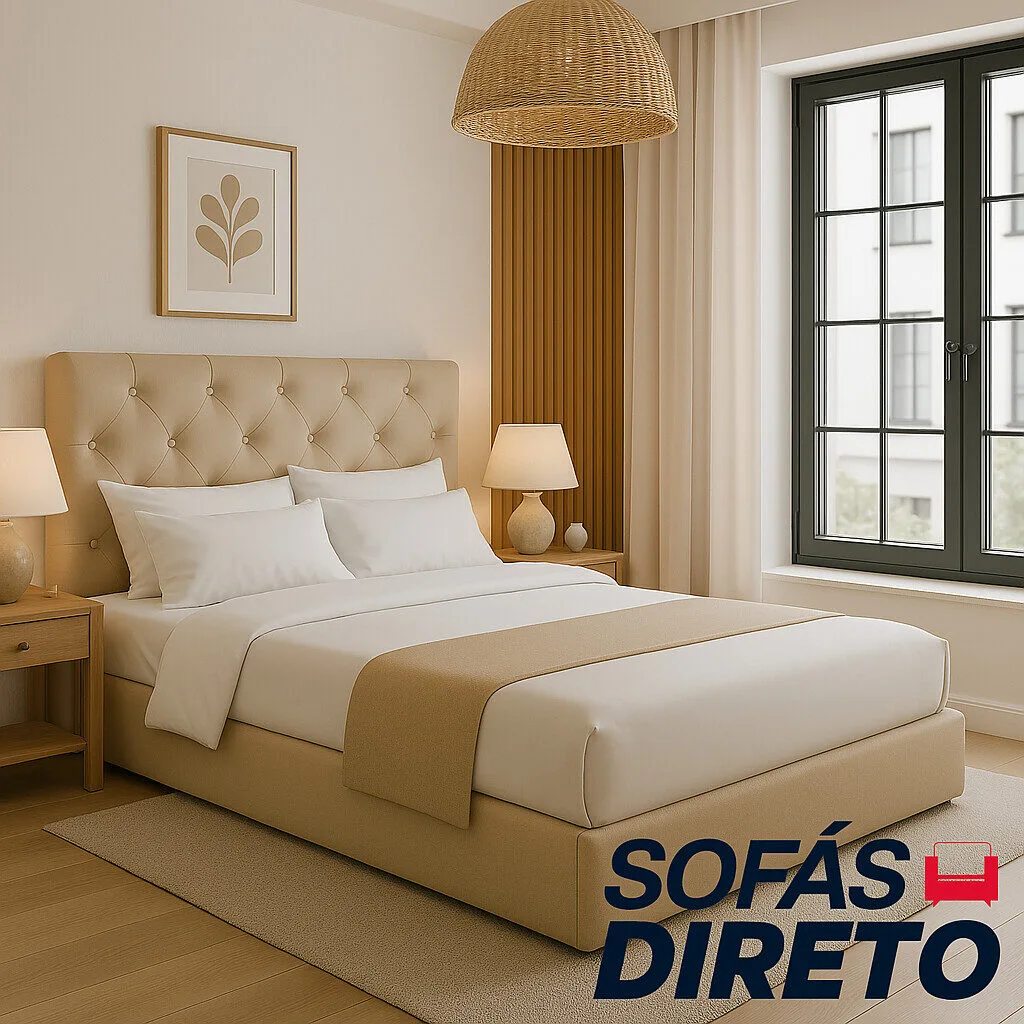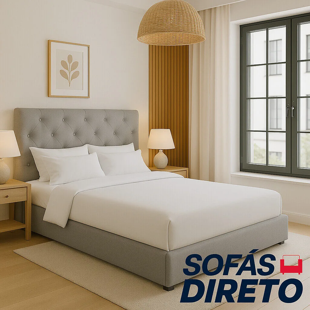 A cabeceira estofada com botões adiciona um toque de sofisticação ao ambiente, combinando o conforto do estofado com o detalhe clássico dos botões que criam um padrão visual distinto. Este elemento não só serve como apoio, mas também como ponto focal decorativo no seu quarto.