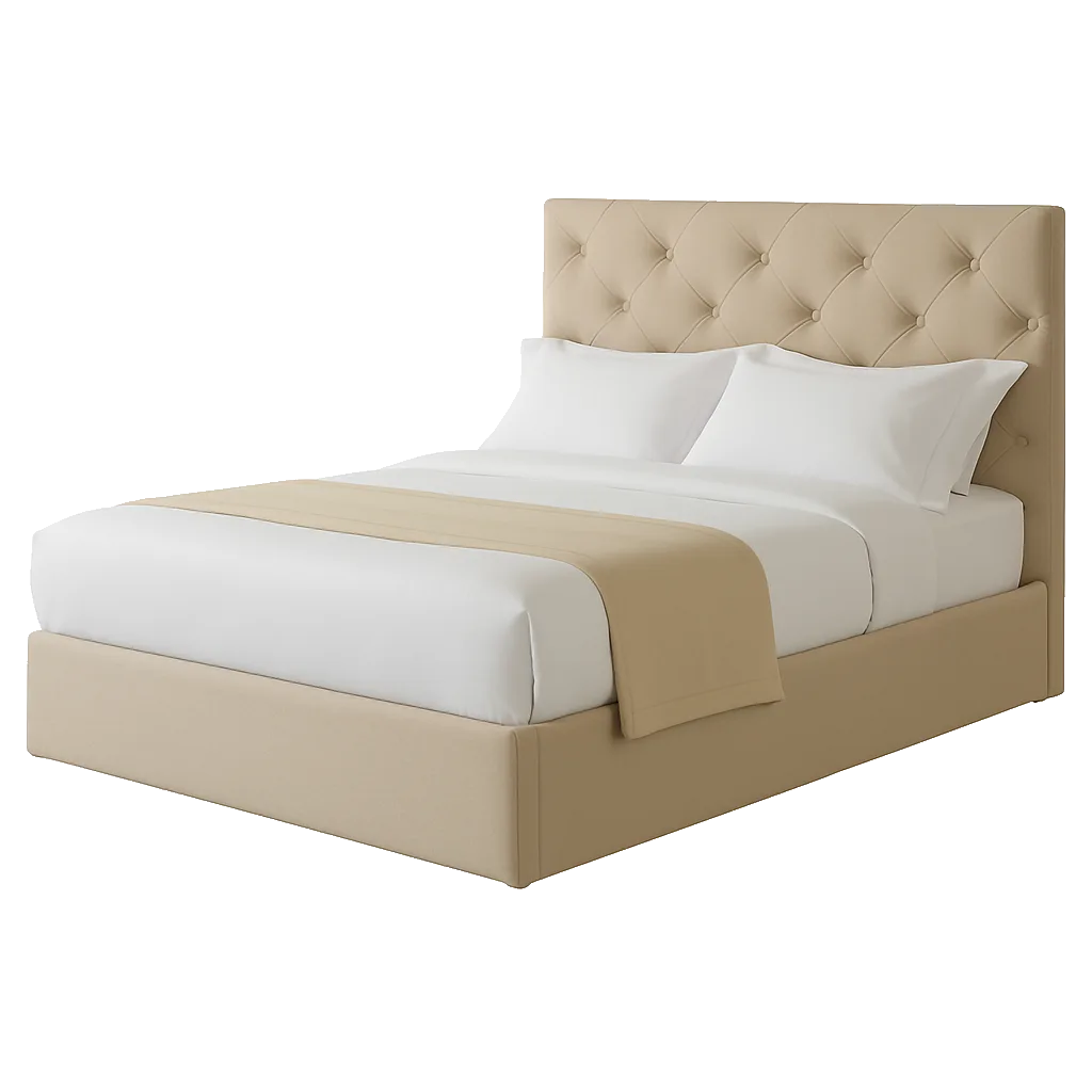 A Cama GWEN com cabeceira com botões é a solução ideal para quem procura praticidade e estilo, transformando o seu quarto num espaço elegante e confortável para noites de sono tranquilas.