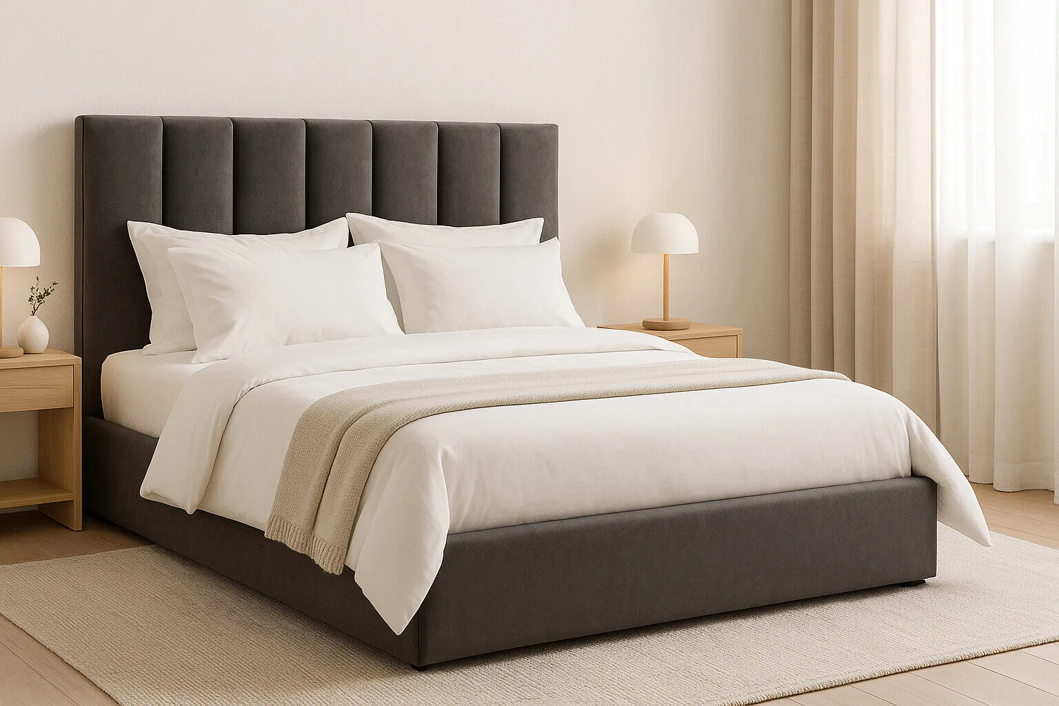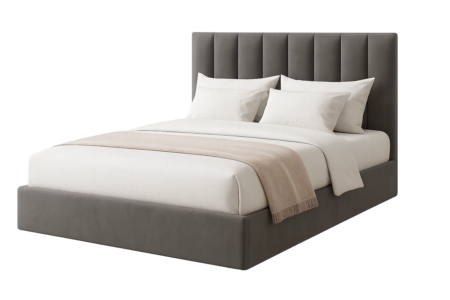 A Cama Rani é uma cama articulada moderna com cabeceira aos gomos. Pack completo que inclui estrado e colchão. Características: * Cama de casal articulada * Cabeceira estofada aos gomos * Estrado incluído * Colchão incluído * Estrutura em madeira * Revestimento em tecido eurosil * Dimensões: 190x140 cm * Cores: Cinza claro e Cinza escuro * Entrega e montagem incluídas Cuidados: * Aspirar regularmente * Limpar com pano seco * Evitar luz solar direta * Para maior durabilidade, rodar o colchão regularmente Cama moderna direto da fábrica, com garantia de 3 anos.Informação adicional