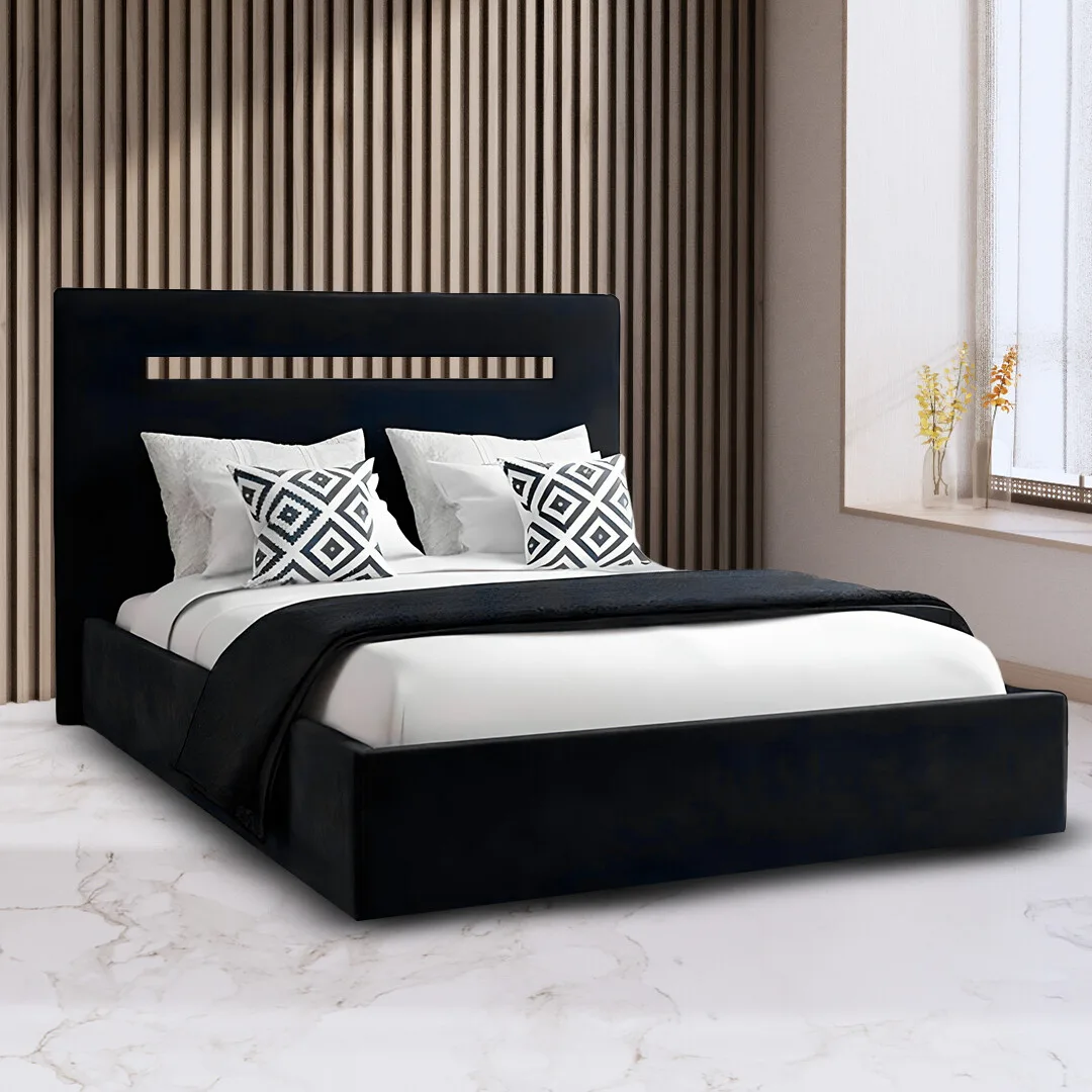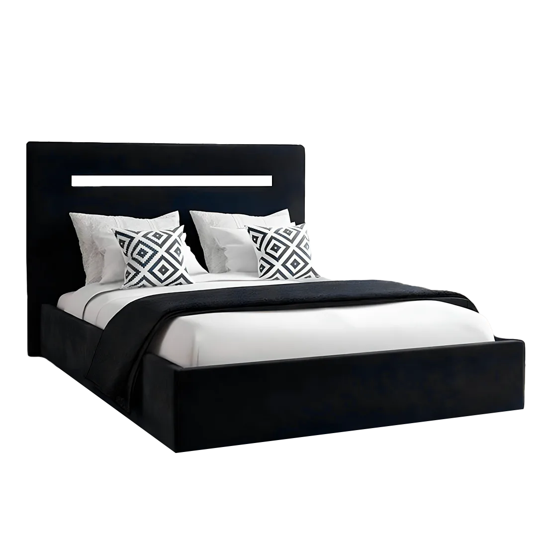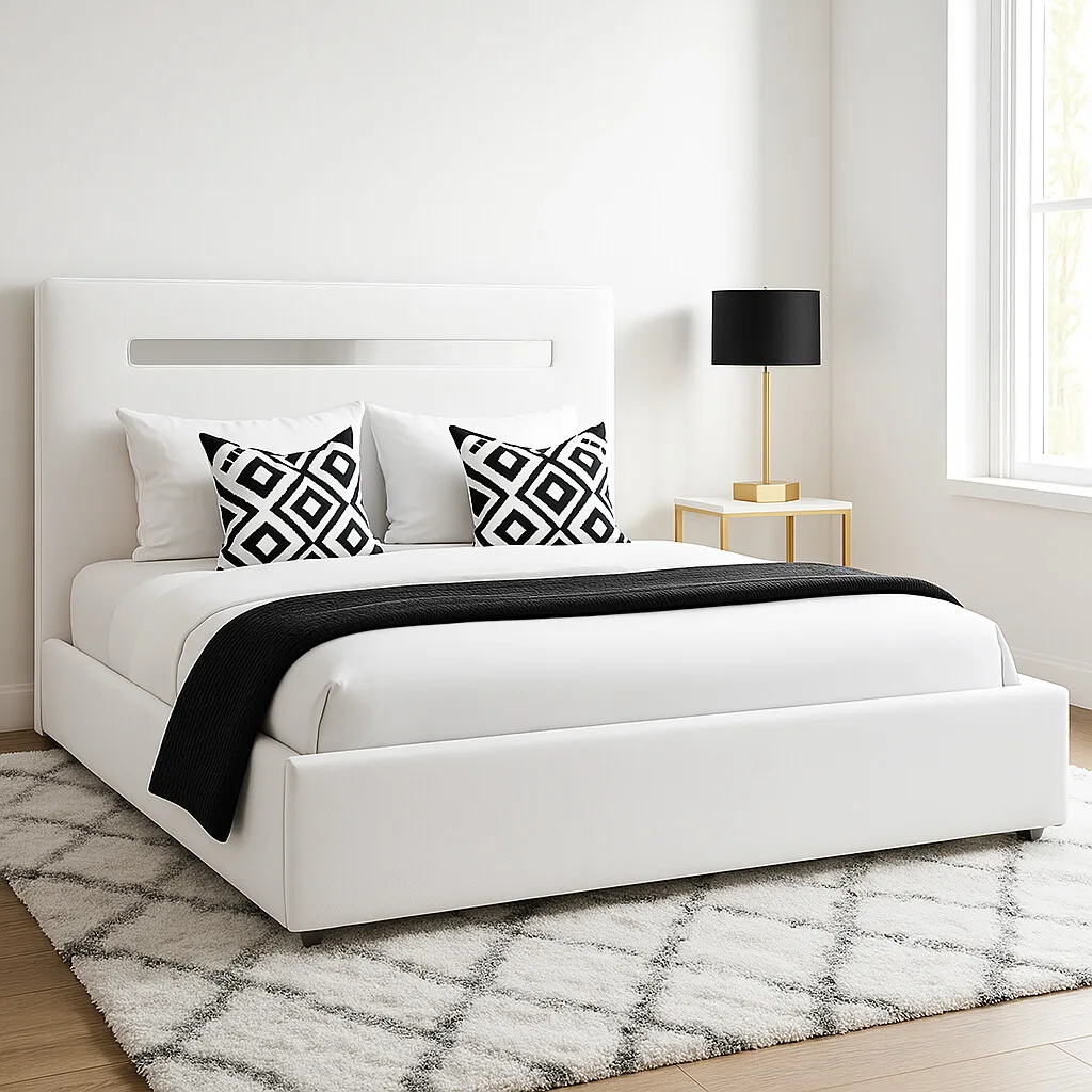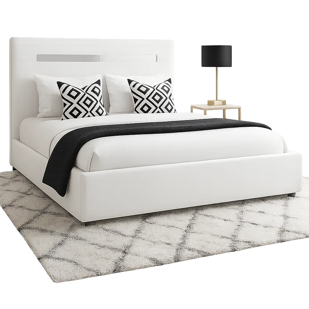 • Cama de casal moderna com cabeceira lisa. Pack com estrado e colchão (190×140 cm).