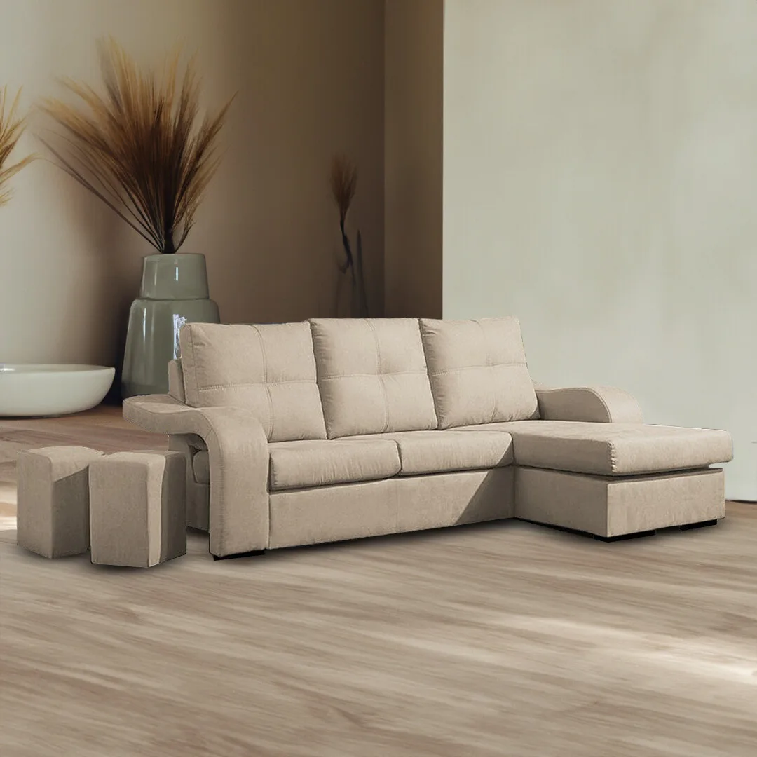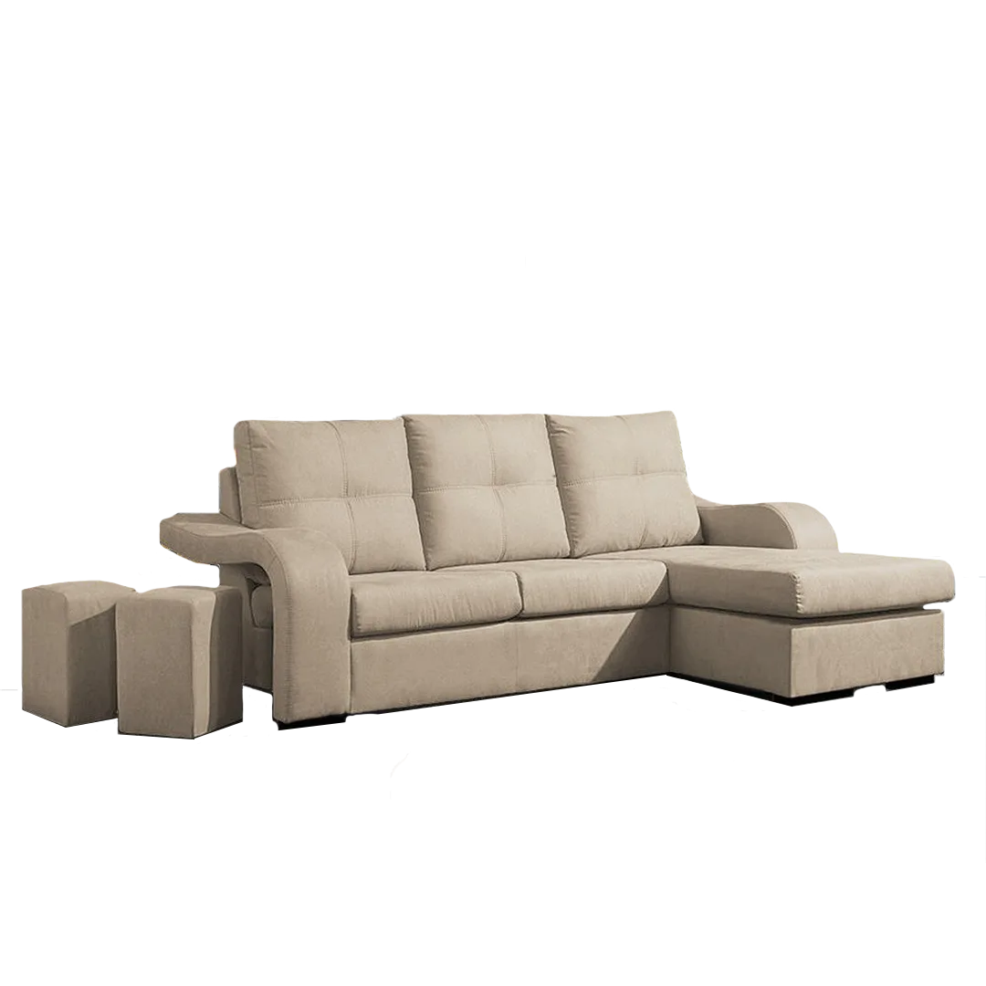 O Sofá Faraó é um sofá moderno que alia conforto e funcionalidade. Com chaise longue reversível e dois poufes integrados nos braços, oferece múltiplas opções de uso. Dimensões: 230x150 cm, perfeito para salas espaçosas. Construção premium com estrutura em pinho tratado e revestimento em tecido 100% poliéster. Características: * Sofá com chaise longue reversível * 2 poufes integrados nos braços * Estrutura em pinho tratado * Revestimento em tecido 100% poliéster * Dimensões: 230x150 cm * Cores: Preto, Cinza e Bege * Entrega e montagem incluídas Cuidados: * Limpar com pano seco ou aspirador * Usar produtos específicos para estofados * Evitar luz solar direta Receba este sofá moderno direto da fábrica para a sua casa, com garantia de 3 anos.Informação adicional